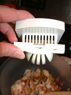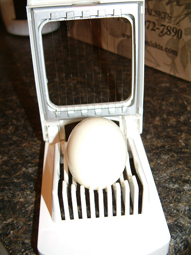 | This handy dandy tool from Pampered Chef makes quick work of slicing and dicing hard-boiled eggs. |