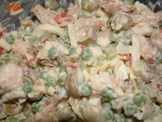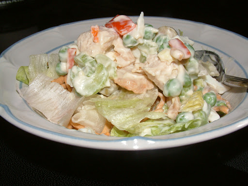 This recipe is easy to make ahead of time. Rather than add all the lettuce and Chow Mein noodles at one time, I chose to add them to single portion sizes. I also experimented with adding Ranch Dressing to the individual serving sizes, for some additional zing, and another time I added some sharp shredded cheddar cheese to a serving. Both were tasty variations.