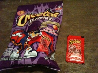 Especially gross was the Horneados in the purple pack that came with a side packet of salsa that you were to pour over the top. Cheetos fingers are one thing, but Cheetos fingers also covered in sticky salsa–yuck!